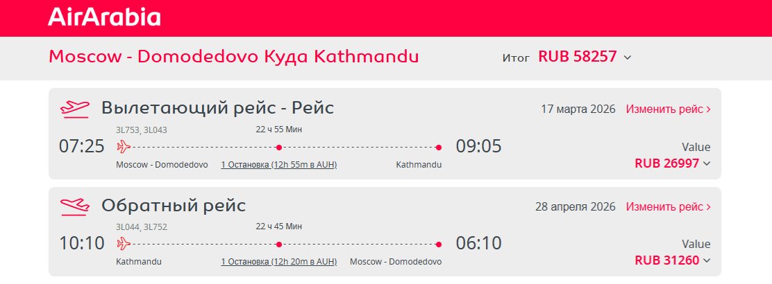Мы рекомендуем лететь в Катманду компанией AirArabia с пересадкой в Абу-Даби