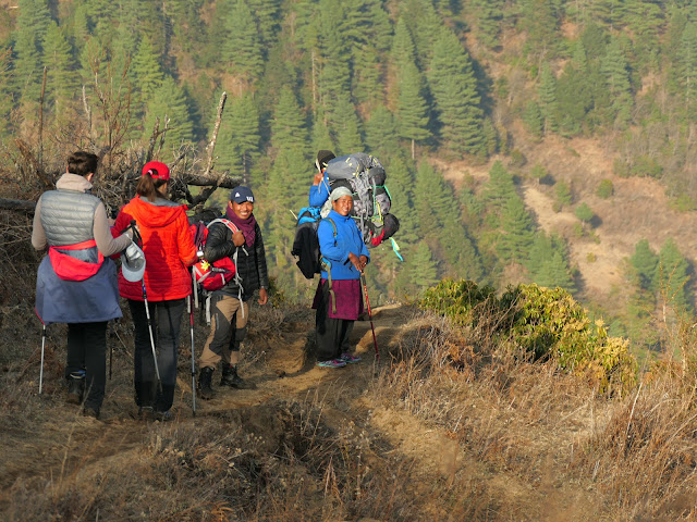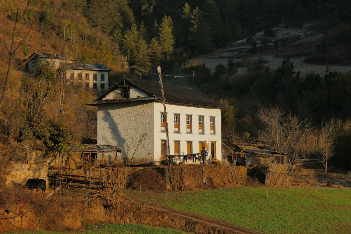 Тропа петляет по северному берегу речки Кунихоп через цепочку деревень Кунихоп, Сурке, Джандинг, Джайди и Даси через неторопливую сельскую жизнь и полную пастораль! Именно тропа, а не дорога. По дороге, где можно встретить колёсный транспорт, не более километра. В середине дня мы переходим мост через речку Солу на высоте 2100, поднимаемся на заключительные 140 метров в Паплу, размещаемся в гостинице, отдыхаем.