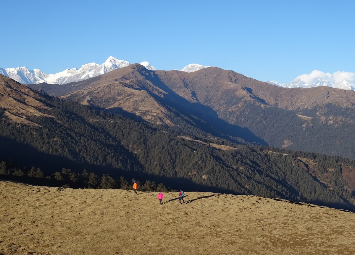Рассвет сегодня лучше наблюдать на соседнем холмике, с крыши строящегося монастыря. Встать для этого надо не позднее 06:00. После завтрака продолжаем путешествие по зелёному гребню, возвышающемуся над шерпскими землями Охалдунги. До ночлега 4 часа пешком. Но с учётом привала на чай и прочих остановок переход займёт немного больше. Обед на лужайке. Ужин у костра. Между обедом и ужином акклиматизационный выход на ближайшую горку, с которой прекрасно видно весь маршрут следующего дня, включая обе вершины Пике. Хорошо видно также освещённые заходящим солнцем Эверест и ещё три горы выше восьми тысяч метров.