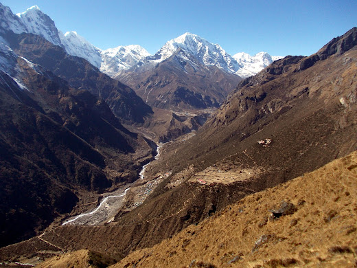 Утром отправляем портеров с вещами в Периче и выходим в сторону Эвереста. Примерно через 2,5 часа останавливаемся на отдых в Горакшепе. Горакшеп или Горак Шеп, имя этому месту дала жёлтоклювая альпийская галка — горак на тибетском и шерпском языках. Своему существованию посёлок на 100% обязан треккерам и альпинистам. Во время первых экспедиций на Эверест со стороны Непала никаких капитальных строений здесь не было. Самая высоко расположенная шерпская хижина добралась только до Лобуче.