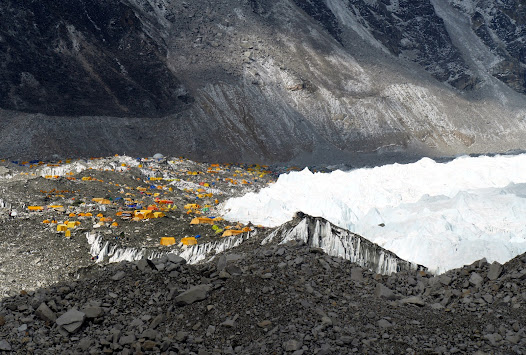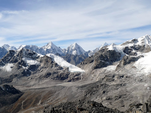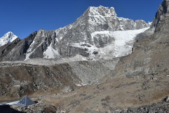 Неторопливо отобедав, неторопливо переходим через ледник Нгозумба — самый протяженный в Непальских Гималаях. Его длина составляет около 20 километров. Ледник живой. Если прислонить ухо к одному из его камней, будет слышно, как он, шурша льдом и камнями, медленно ползёт на юг.