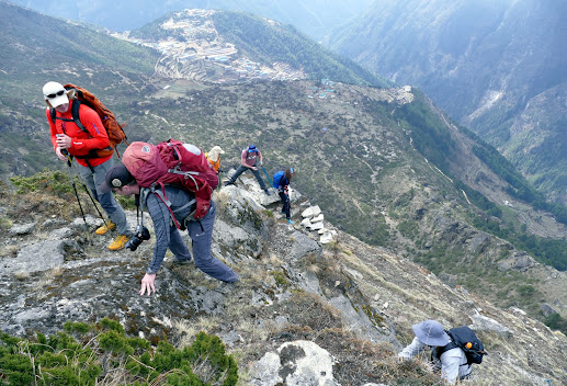 В программе буддийский монастырь Намче, сосново-можевелловый лес в окрестностях Джаро, восхождение по гребню Кхумбу Юл Ла, мемориал семьи первовосходителя Эвереста сэра Эдмунда Хиллари, и ещё один монастырь и деревня Кундэ. Самая высокая точка сегодняшнего восхождения — 4238 метров. На ней мы остановимся минимум на час. Там очень красиво и сверху далекооооо видать!