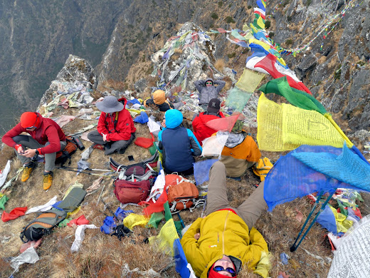 До обеда свободное время — восстанавливаем силы после двух дней серьёзных нагрузок. Утром у желающих будет возможность забраться на культовую вершину Гокио Ри (5360), в очередной раз посмотреть на Эверест и сделать фотографии. Вид, конечно, впечатляет, но всё же он уступает и вчерашнему, и тому, что мы видели с перевала Ренджо.