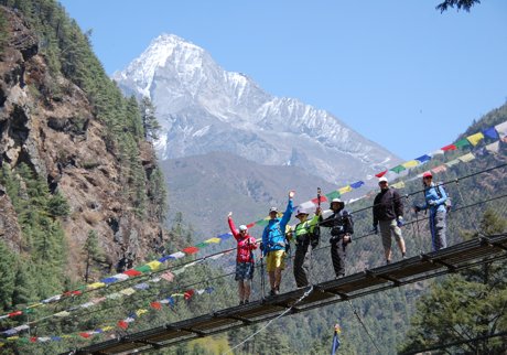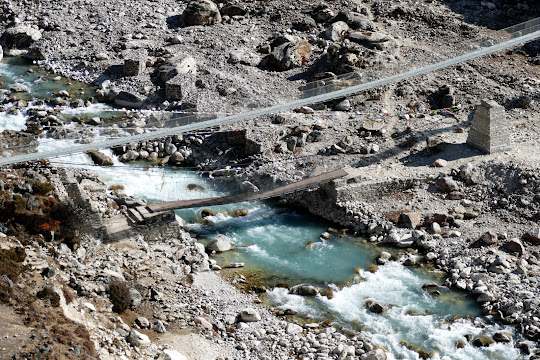 Через Монджо проходит граница Национального парка Сагарматха. Постепенно курортный район уступает место более сказочным пейзажам, которые удобнее всего наблюдать с моста сэра Эдмунда Хиллари, по которому мы перейдём в Верхний Солукхумбу или просто Кхумбу.