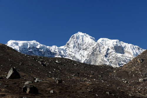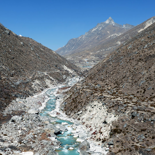 До Пирамиды 8 километров по просторной и очень красивой тропе с небольшими спусками и подъёмами. Идти будет легко, поскольку мы уже хорошо акклиматизированы. Выдвигаемся в 9 утра по направлению к Амадабламу. По левую руку Лобуче Восточная. По правую — прославленная альпинистом Валерием Шамало гора Чолатце. Чуть дальше — Табоче. Внизу озеро Чола, за которым трек поворачивает налево. Впереди красавица Пумори и Лингтрен. Ещё немного и мы выходим на главную тропу классического треккинга к Эвересту. Сам Эверест отсюда не виден, его скрывает стена Нупце. В непродолжительный перекус и снова в путь. В Лобуче придём ещё до обеда.