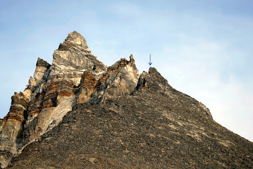 Далее мы немного вернёмся назад и по тайной срезке начнём подъём на Калапаттар. Имя этого небольшого возвышения в южном гребне горы Пумори можно встретить в написании Калапатхар, Кала Паттар или Кала Патхар, на непальском языке оно означает Чёрный Камень или Чёрная скала. На картах его высоту обычно обозначюат как 5540 метров над уровнем моря. Но, если внимательно приглядеться к карте, имеется в виду место с координатами 27.9913N, 86.8277E. Главная же на сегодня смотровая площадка располагается на 500 м севернее, на высоте 5644. Она имеет координаты 27.9956E, 86.8284E От Горакшепа набор высоты составит чуть более 450 м, расстояние по тропе 2 км, обратно столько же.