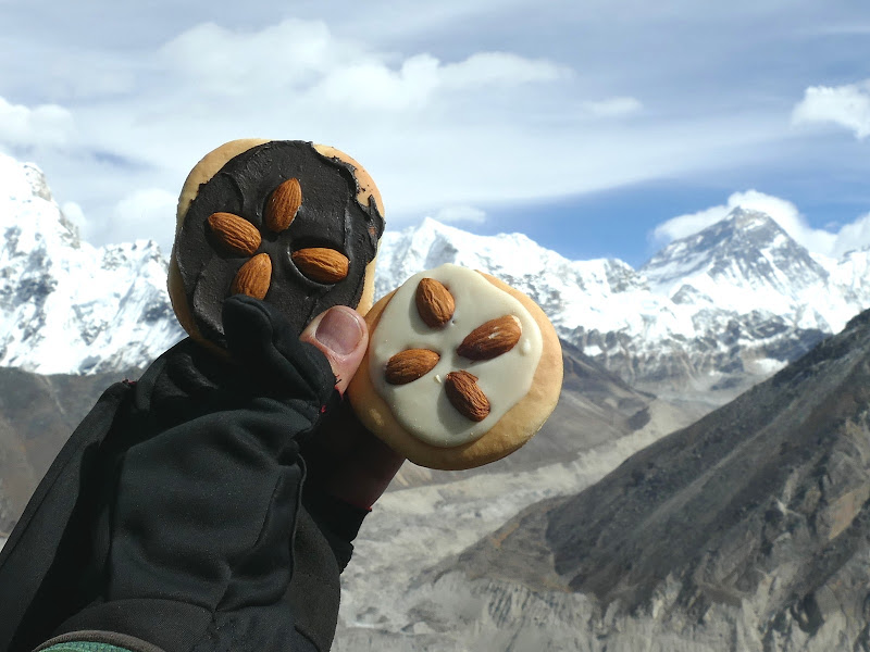 Это очень серьёзный гималайский треккинг — не экспедиционный, но по продолжительности, набору высоты и общему времени нахождения на более чем пяти километрах над уровнем моря приближающийся к спортивному горному походу. Нам предстоит преодолеть два перевала: Ренджо Ла (5417 — здесь и далее высота над уровнем моря в метрах) и Чо Ла (5368), а также совершить восхождения на 5-тысячники Сундар (5361, опционально) , Скрамблинг (5600±20) и Калапаттар (5644). Точность измерения Калапаттара в пределах метра, поэтому можно с уверенностью утверждать, что он минимум на метр выше Эльбруса. Восходитель, стоящий на его вершине, наблюдает вершину Эвереста с расстояния лишь немного превосходящего 10 км. Зрелище это грандиозное. Однако, более впечатляющим мне представляется вид на Эверест с вершины Скрамблинг. Посмотрим на две наши видовые точки глазами восходителей на крышу мира.