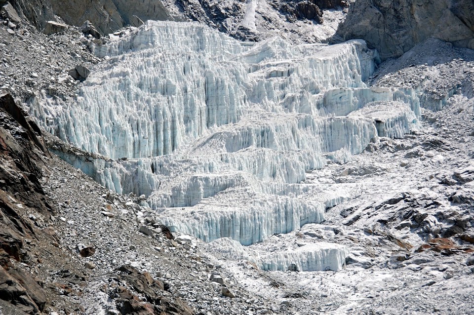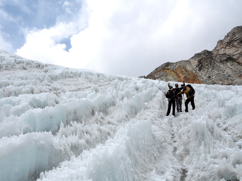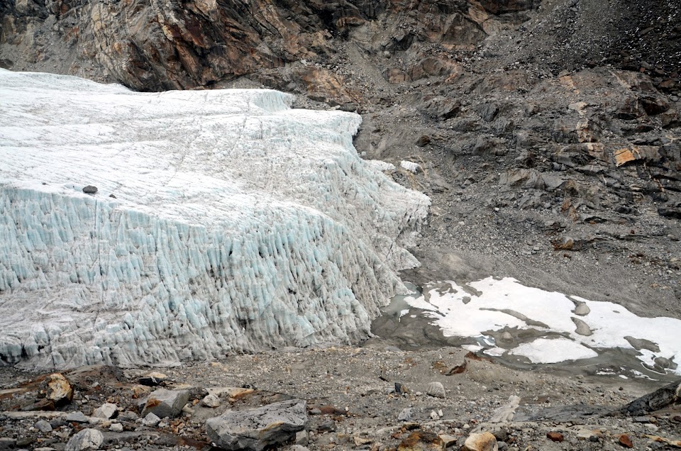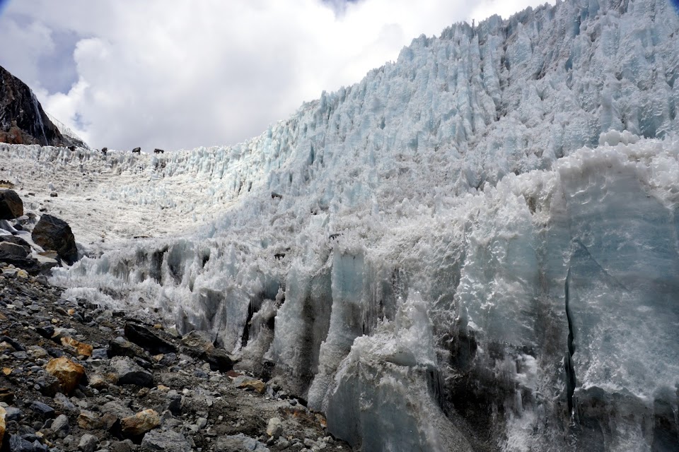 Ледник, питающийся от Табуче (слева) и Чолаце (Чолатзе, справа)
