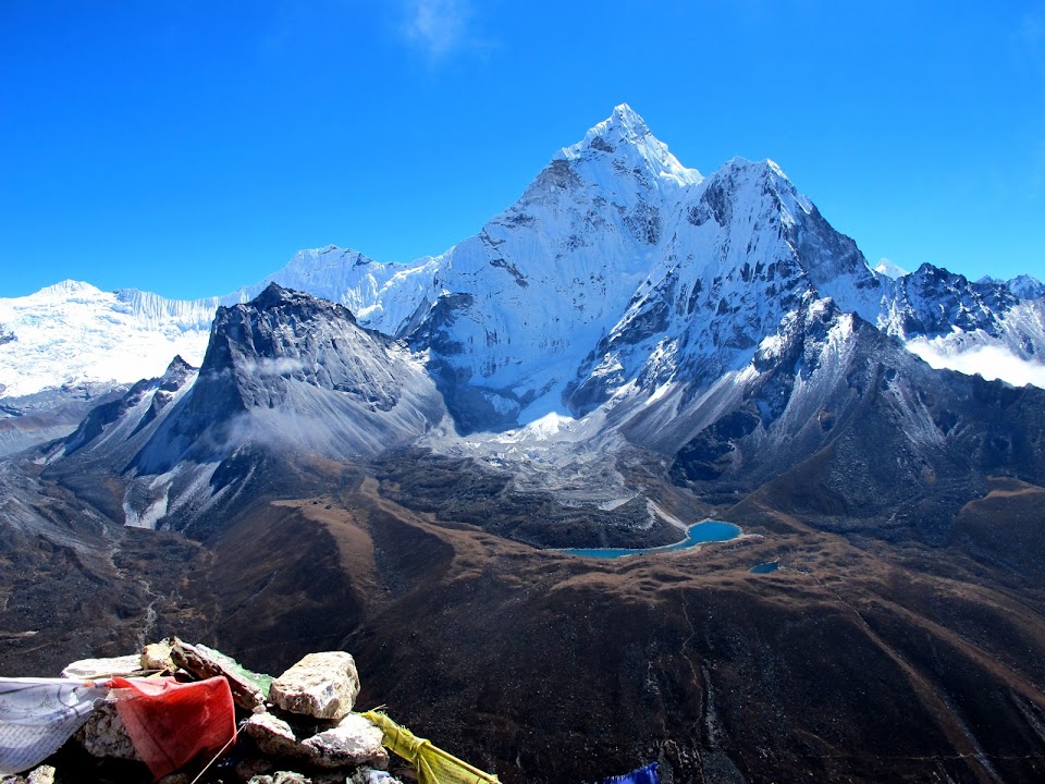 Амадаблама. Эверест едва торчит из-за восточного склона Кхумбу Юл Ла