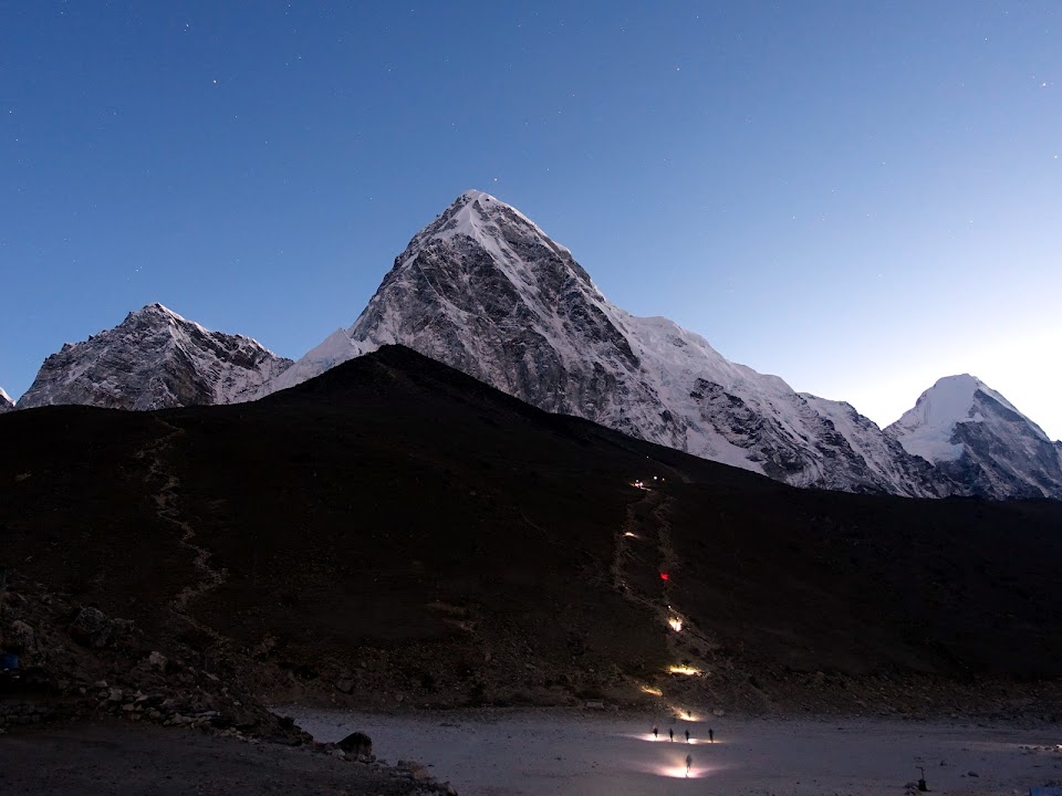 Кхумбуце (справа), под которой освещённый