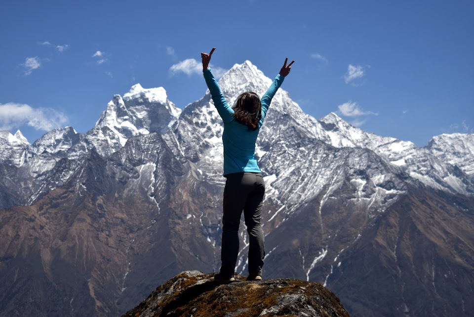 над Намче Базаром. Слева от Лены гора Кангтега, в